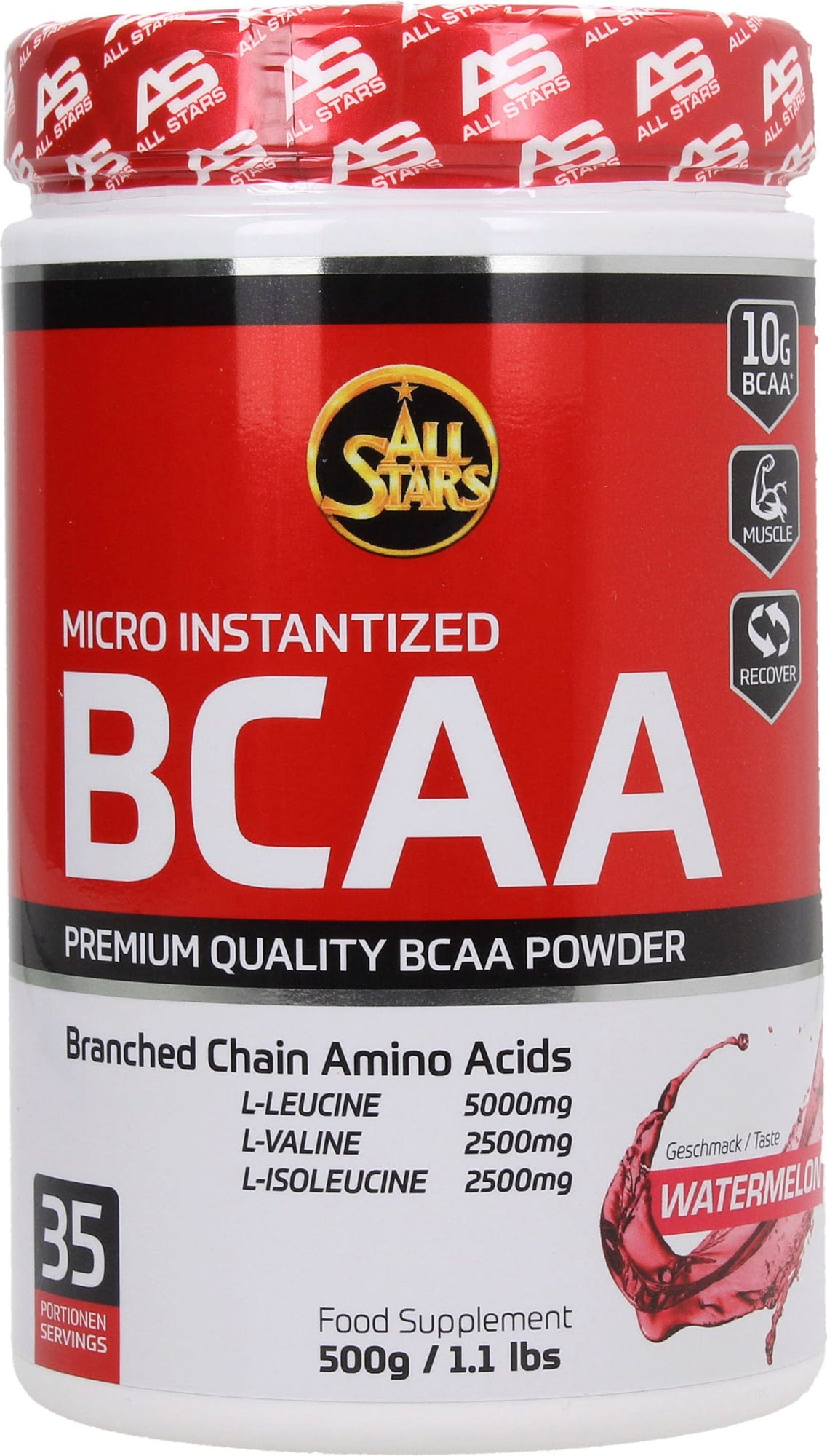 Das leicht-lösliche BCAA Pulver von All Stars bietet eine fruchtige Abwechslung in Sachen Aminosäuren. Es ist hochdosiert mit den verzweigkettigen Aminosäuren L-Leucin, L-Valin und L-Isoleucin. Das nach wassermelone schmeckende Pulver kann in intensiven Trainingsphasen sowie auch in Diätphasen verwendet werden.