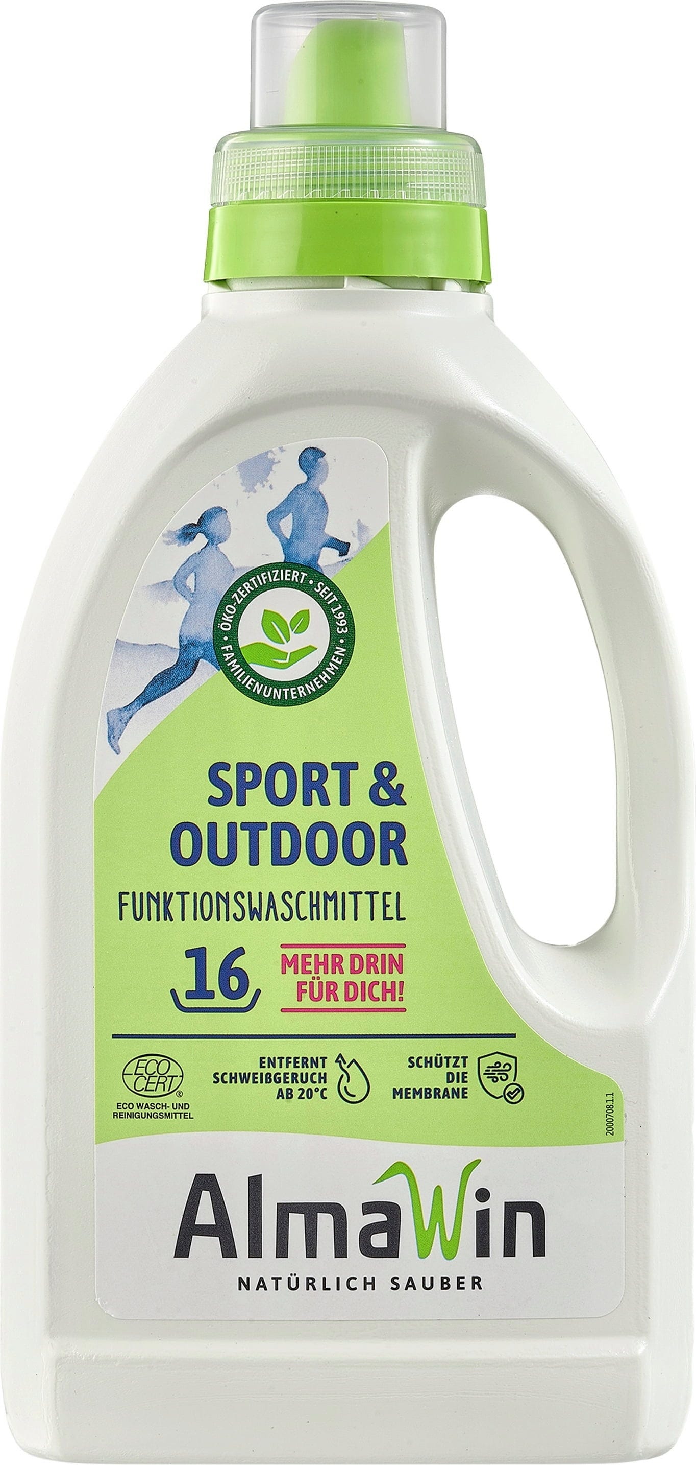 Das Sportfunktionswaschmittel von AlmaWin wäscht einwandfrei sauber und entfernt Stoffe effektiv von Körper- und Schweißgeruch. Es behält Membranfunktionen wie Windschutz und Atmungsaktivität auf natürliche Art und Weise. Es ist für alle Funktions- und Membrantextilien geeignet.