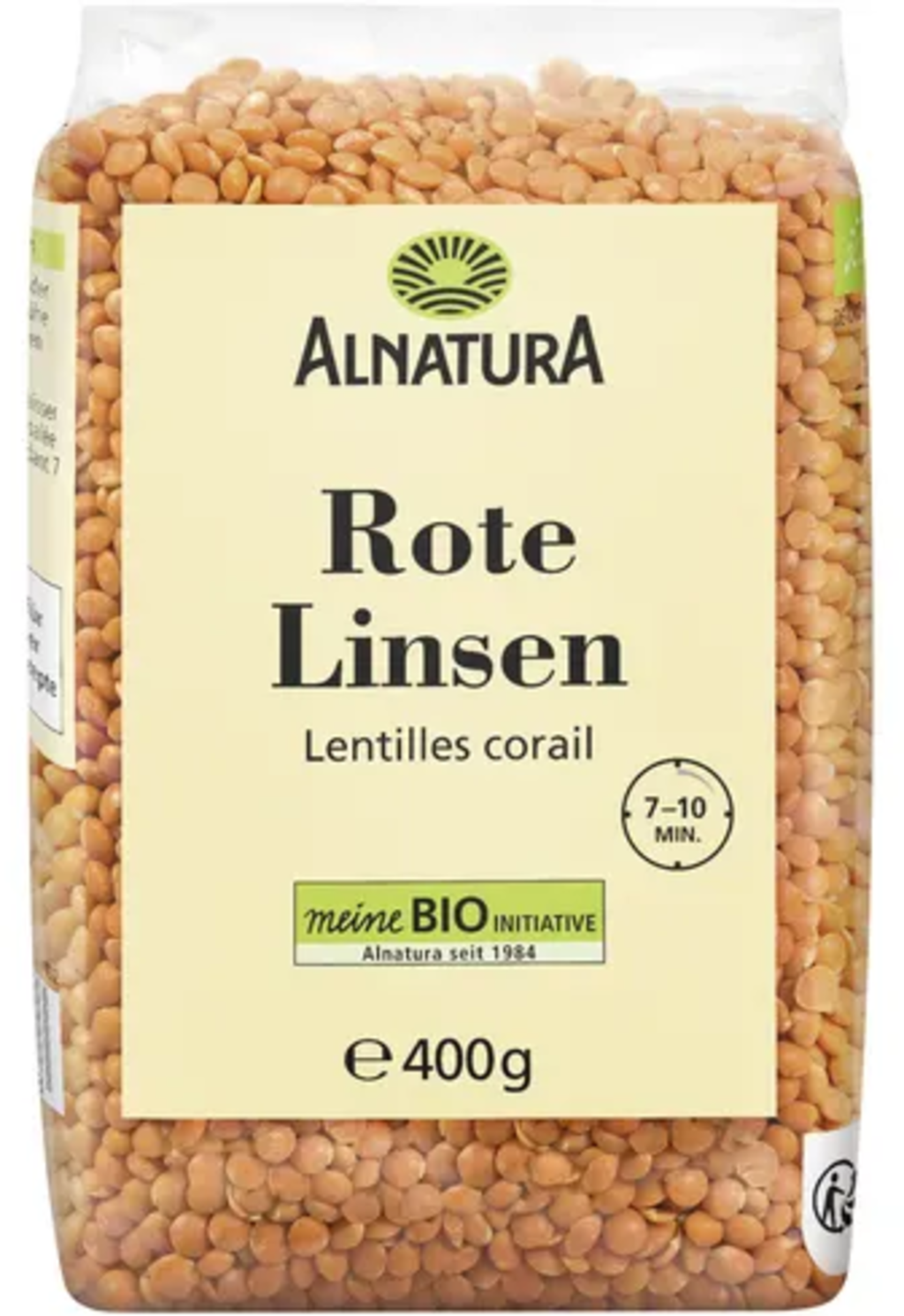 Rote Linsen sind ein wahrer Klassiker aus der orientalischen Küche und vielseitig verwendbar. Alnatura Rote Linsen sind geschält und bringen sich in verschiedenen Gerichten mit ihrem milden Eigengeschmack ein. Mit einer Garzeit von 7 bis 10 Minuten sind sie schnell weichgekocht und einsatzbereit. Probiere die kleinen Hülsenfrüchte zu Suppen, Eintöpfe, Pürees, Salate und vielem mehr.