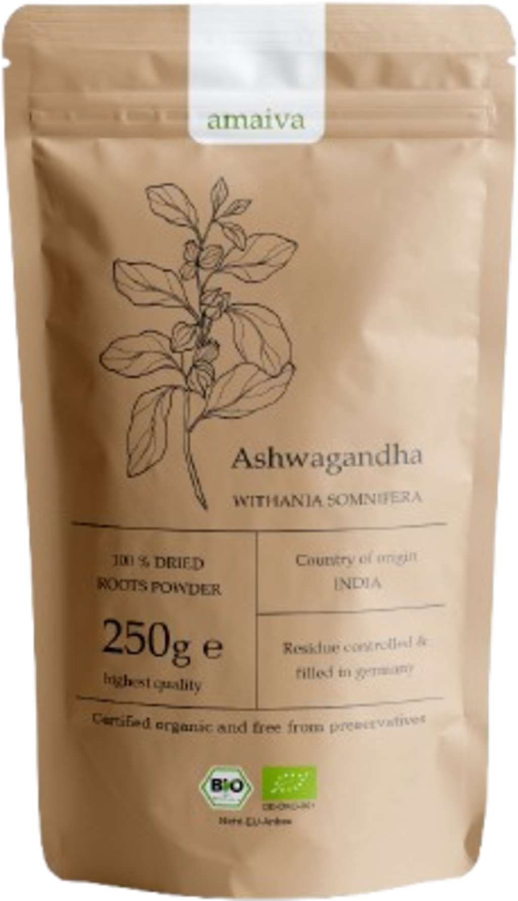 Amaiva Bio Ashwagandha Pulver, 250 g