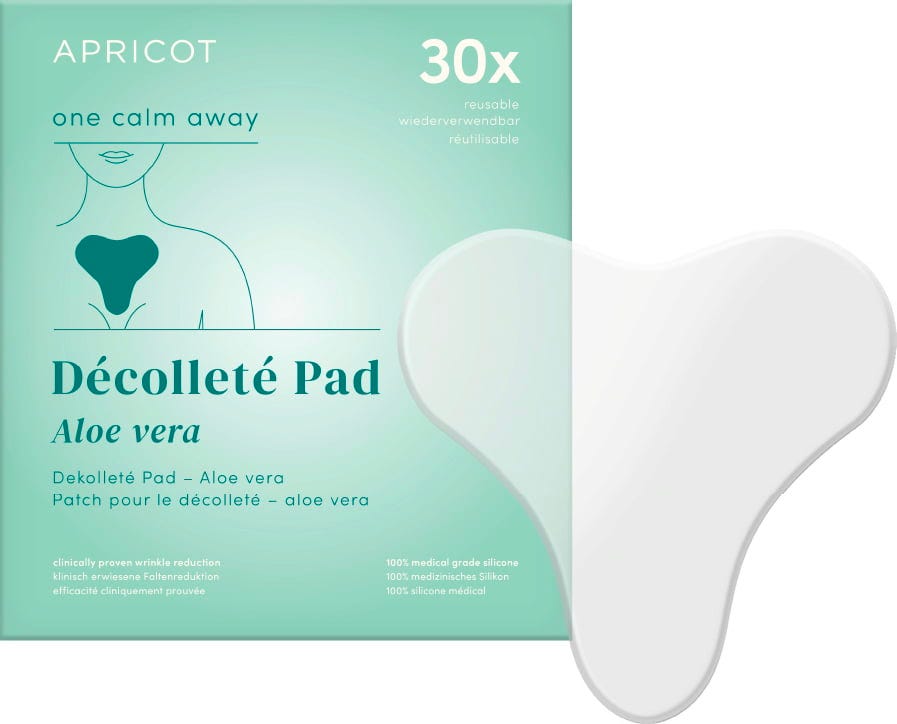 Mit dem Aloe Vera Dekolleté-Pad von APRICOT pflegst du deine Haut im Dekolletébereich intensiv. Es besteht aus medizinischem Silikon und ist mit hochwertiger Bio-Aloe-Vera angereichert, wodurch Linien und Fältchen geglättet werden können. Das Pad kann bis zu 30x wiederverwendet werden. Ideal geeignet ist das Pad auch zur Anwendung nach dem Sonnenbad.