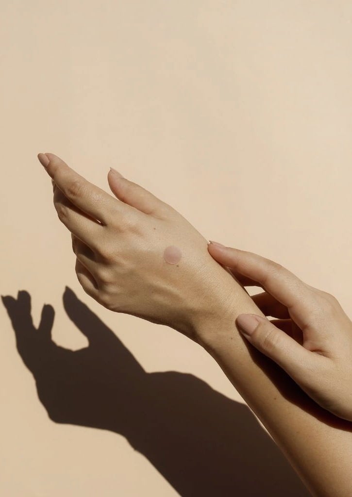 2. Trage deinen Sonnenschutz wie gewohnt auf und warte ein paar Minuten. Sobald der UV-Indikator-Sticker transparent wird, bist du optimal geschützt.