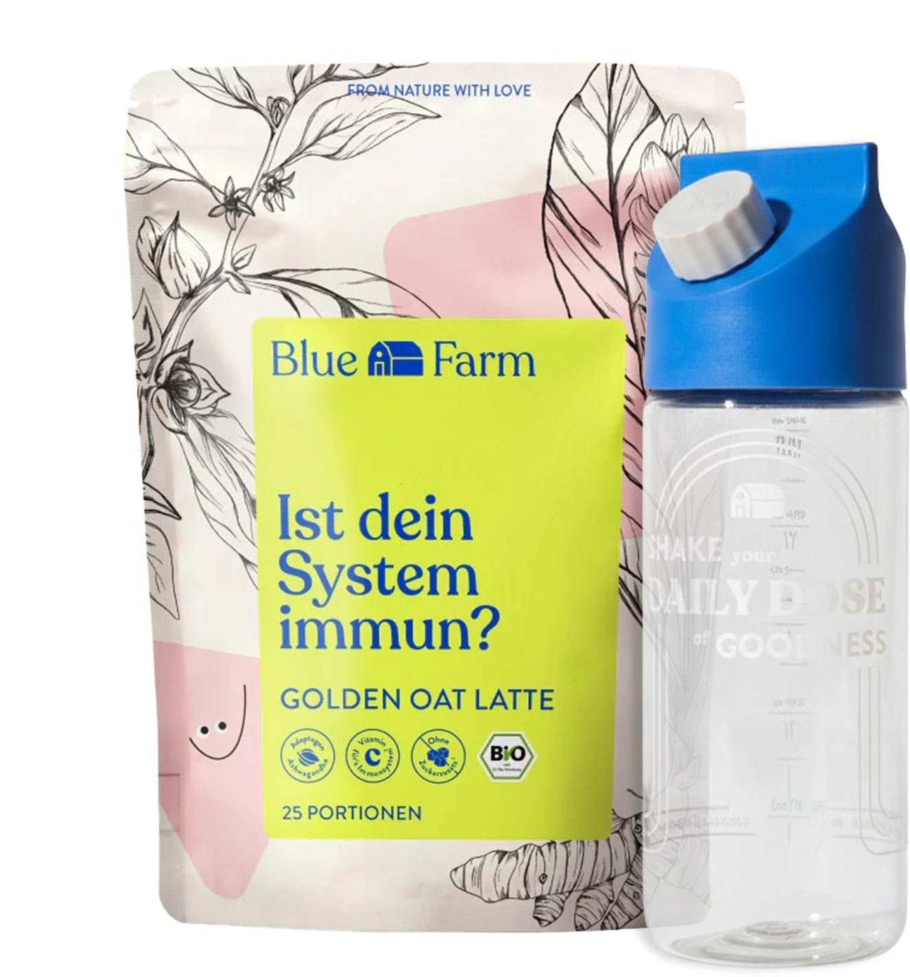 Gönn dir eine goldene Auszeit mit dem Golden Oat Latte von Blue Farm – einer perfekten Kombination aus cremigem Hafer und ausgewählten Superfoods. Kurkuma, Ingwer und das Adaptogen Ashwagandha machen dieses Getränk zu einem Trinkgenuss für jede Tageszeit. Der pflanzliche Bio-Latte ist komplett ohne zugesetzten Zucker, künstliche Aromen oder Zusatzstoffe – einfach purer Geschmack und natürliche Power.