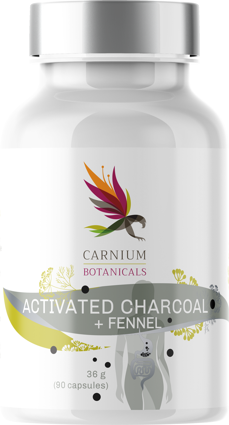 Diese Kapseln von Carnium Botanicals enthalten Aktivkohle und Fenchel. Die Kapseln sind vegan und frei von Gluten, Konservierungsstoffen und Zuckerzusatz.