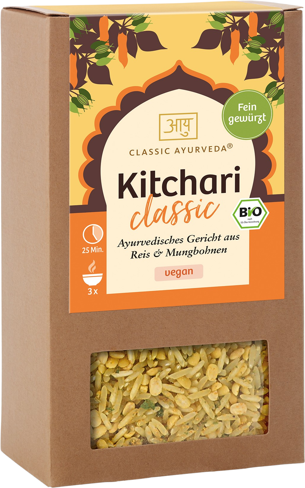 Dieser Aufruf geht an alle Genießer:innen da draußen, die in kürzester Zeit ein super leckeres, ayurvedisches Gericht auf den Tisch zaubern möchten! Das Kitchari Klassik Bio ist genau das Richtige für euch. Eine schmackhafte Kombination aus Reis, Mungbohnen und Gemüse verfeinert mit zahlreichen, ayurvedischen Gewürzen.