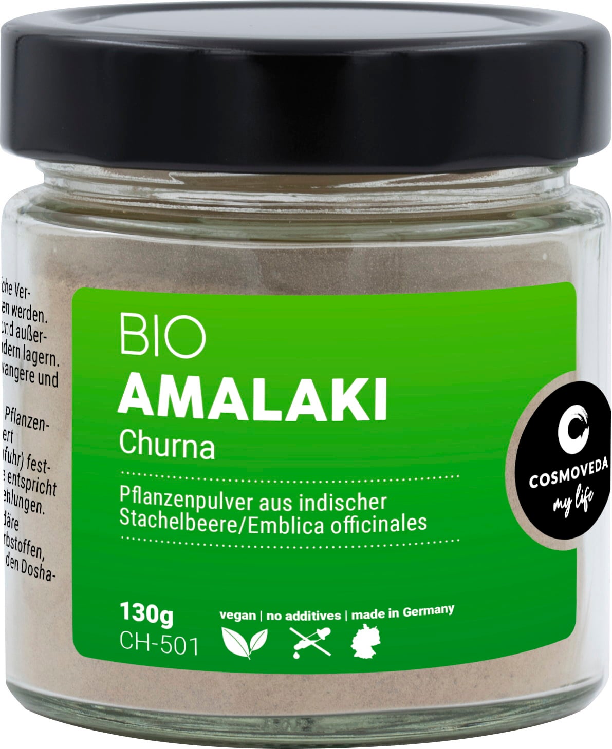 Weitere Namen für die Amla-Frucht sind Myrobalan und Indische Stachelbeere. Die Pflanze enthält Vitamin C, Kalzium, Kalium, Eisen, Beta-Carotin, Vitamin E, Pektine, Bioflavonoide sowie 13 verschiedene Gerbsäuren.