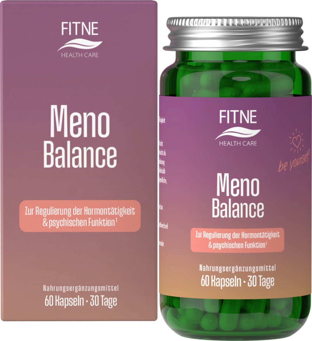 FITNE hat mit Meno Balance ein natürliches, 100 % pflanzliches Präparat entwickelt, in welchem Yamswurzel, Hopfen und Mönchspfeffer mit hochwertigem Nachtkerzenöl kombiniert werden. Abgerundet wird die pflanzliche Kombination mit wichtigem Vitamin B1, B6 und Biotin.