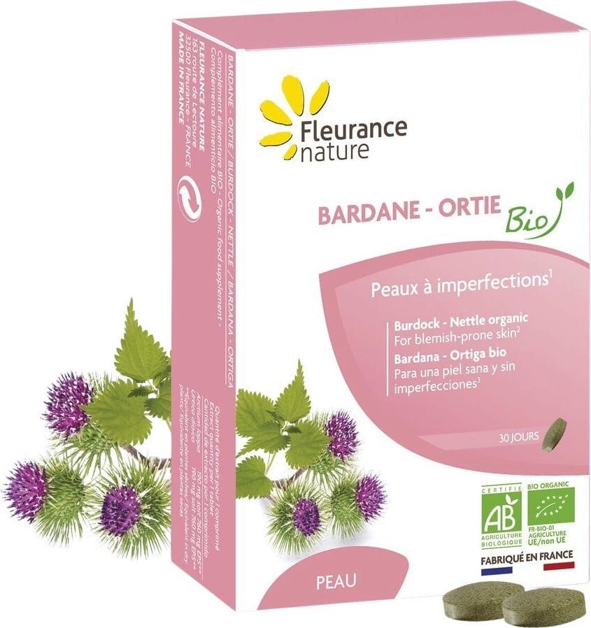 Zwei konzentrierte Extrakte aus sorgfältig ausgewählten Bio-Pflanzen, dosiert in einem speziell für Haut mit Unreinheiten entwickelten Nutrikosmetikum. Es kombiniert Klette sowie Brennnessel.