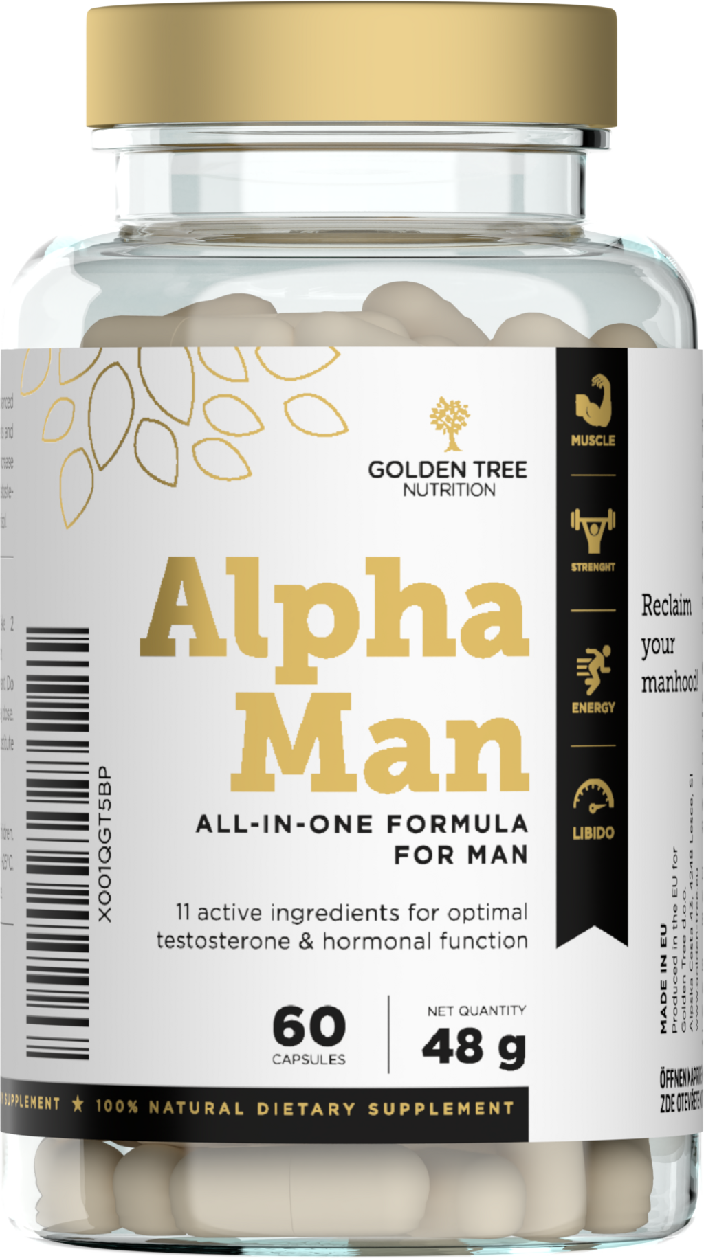 Alpha Man von Golden Tree ist ein Nahrungsergänzungsmittel, das speziell für Männer entwickelt wurde. Hier vereinen sich 11 Wirkstoffe - darunter spezielle Pflanzenextrakte, ausgewählte Vitamine sowie Zink und Selen.