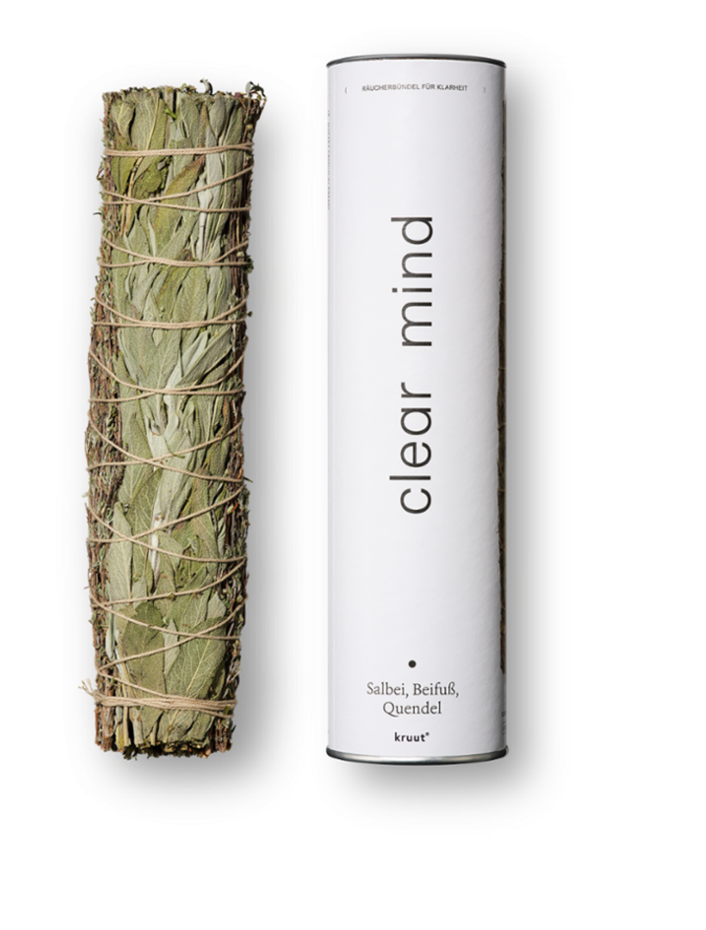 Das kruut Clear Mind Räucherbündel besteht aus einer traditionellen Mischung heimischer Wildkräuter. Die Kombination aus Salbei, Beifuß und Quendel verströmt beim Räuchern einen intensiv-würzigen und klaren Duft. Jedes Exemplar wird in Handarbeit gebunden und schonend getrocknet, um die Qualität der enthaltenen ätherischen Öle zu bewahren.