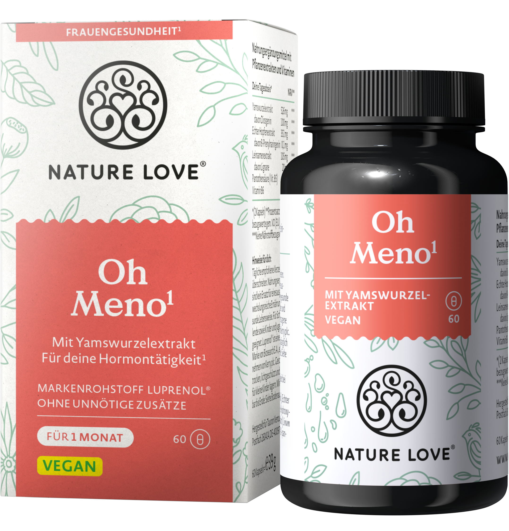 In den Wechseljahren hat der Körper besondere Anforderungen und der Wunsch nach Ausgeglichenheit ist groß. Die Oh Meno Kapseln von Nature Love unterstützen Frauen deshalb genau in dieser Lebensphase. Die Kapseln sind zu 100 % vegan und mit Extrakten aus Hopfen, Yamswurzel und Leinsamen sowie wertvollen B-Vitaminen angereichert, um dich ganzheitlich und bestmöglich zu unterstützen.