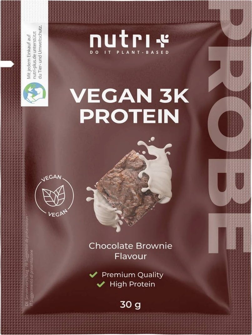 nutri + Vegan 3K Proteinpulver Probiergröße, Chocolate Brownie (30 g)