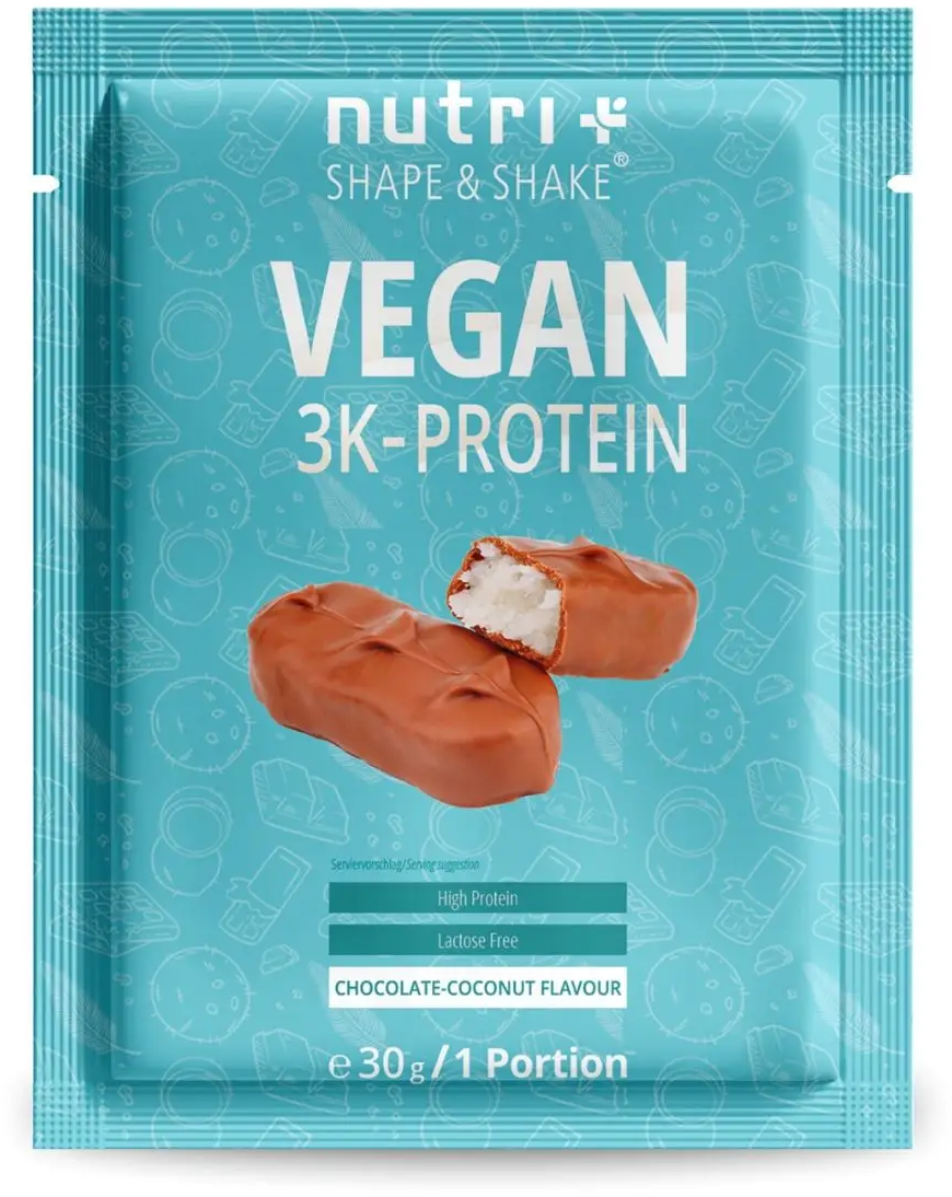 nutri + Vegan 3K Proteinpulver Probiergröße, Chocolate Coconut (30 g)
