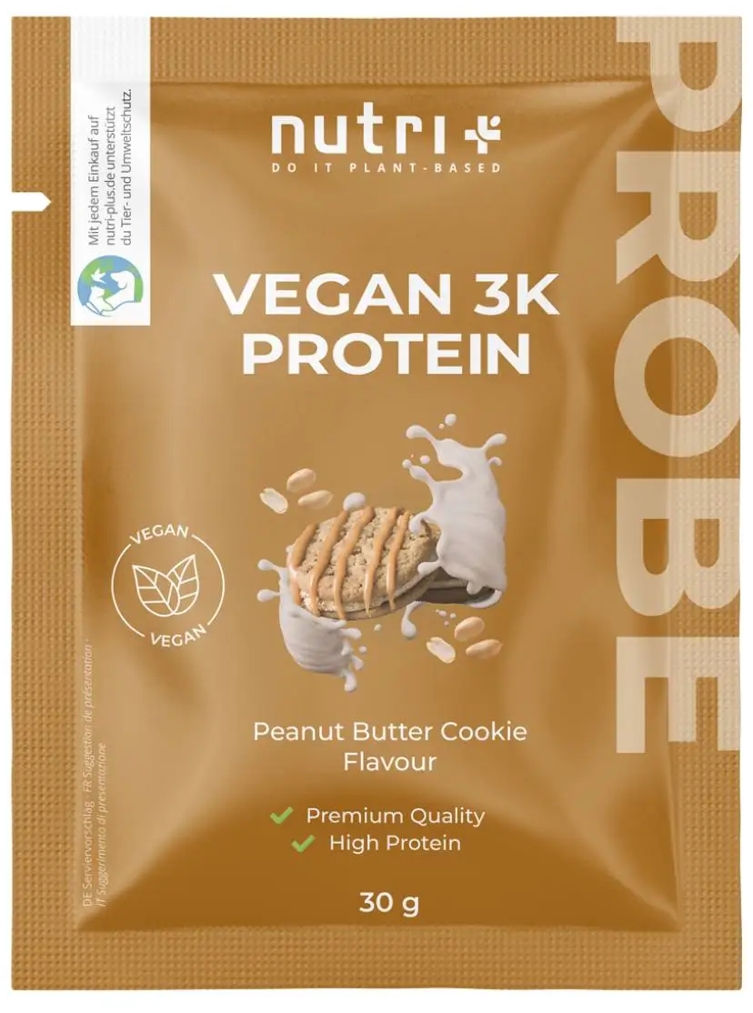 nutri + Vegan 3K Proteinpulver Probiergröße, Peanut-Butter-Cookie (30 g)