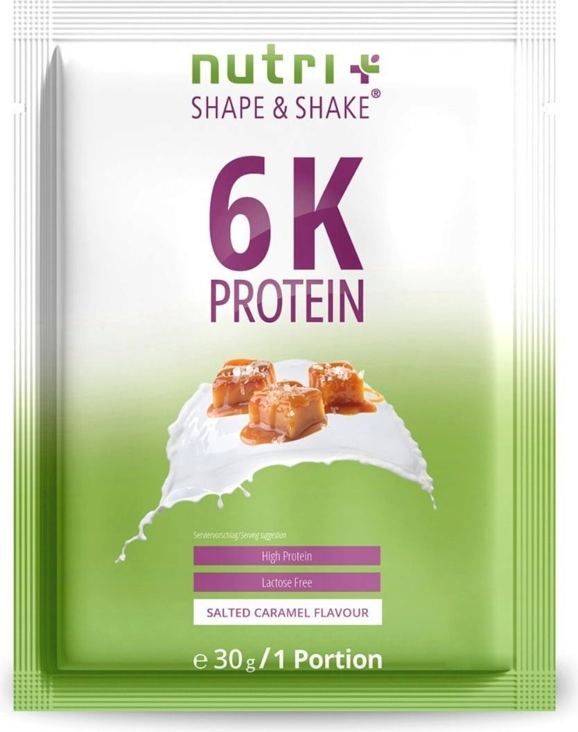 nutri + Vegan 6K Proteinpulver Probiergröße, Salted Caramel (30 g)
