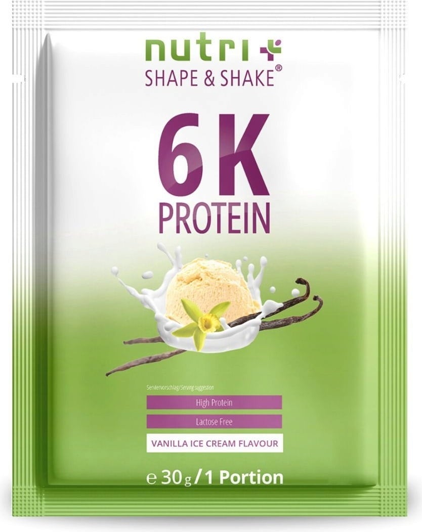 nutri + Vegan 6K Proteinpulver Probiergröße, Vanilla Ice Cream (30 g)