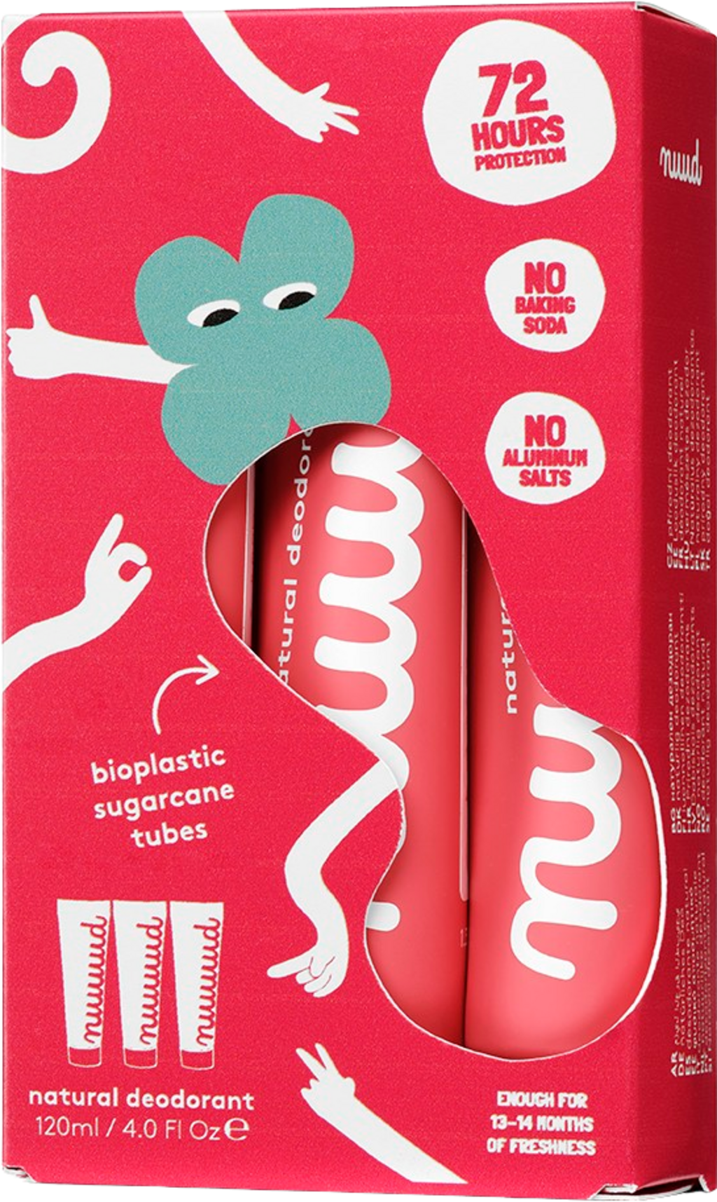 Sanfte, natürliche Geruchskontrolle ohne zusätzliche Duftstoffe. Die nuud-Deocreme besteht aus wenigen Inhaltsstoffen und riecht äußerst angenehm, obwohl keine Duftstoffe zugesetzt wurden. Dank Mikrosilber und Zinkoxid bietet sie einen hautmilden Schutz vor unerwünschten Gerüchen und hält dich trocken. Außerdem ist die Creme besonders ergiebig.