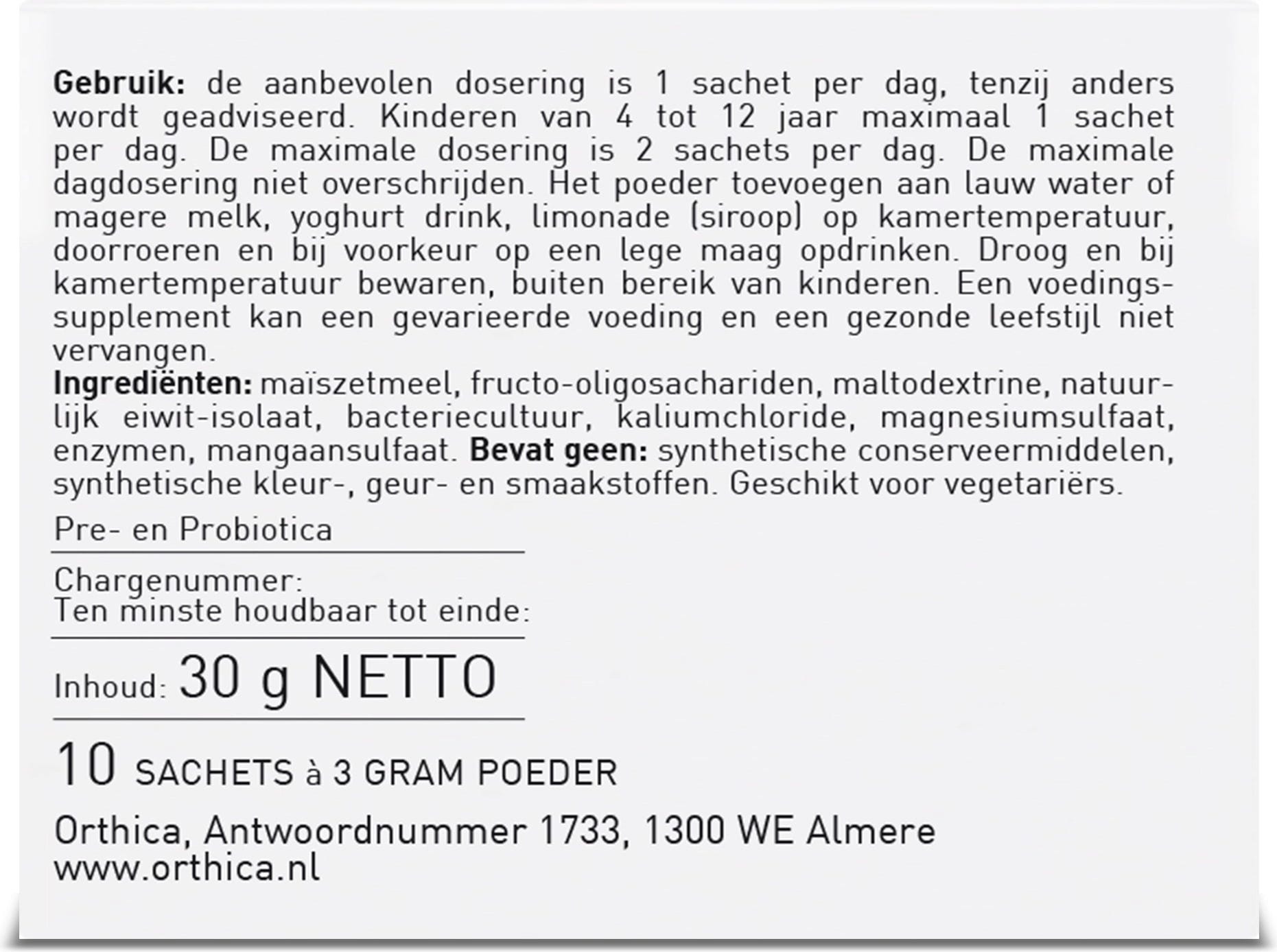 | Verantwortliches Lebensmittelunternehmen: | Atrium B.V., Wormerweg 1, 1311 XA, Almere, Niederlande, www.orthica.nl |
