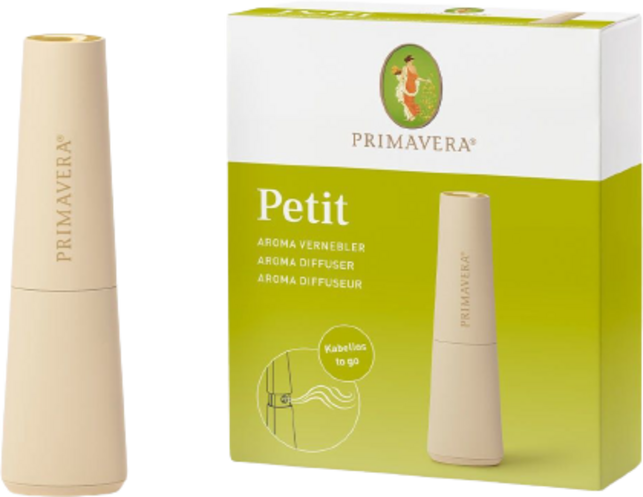 Der kleine und praktische Aroma Vernebler Petit ist immer mit dabei und sorgt bei Bedarf für wundervolle Duftmomente. Er kommt im eleganten, modernen Design mit goldfarbener Deckelapplikation und inklusive praktischem Bio-Baumwollbeutel für den Transport.