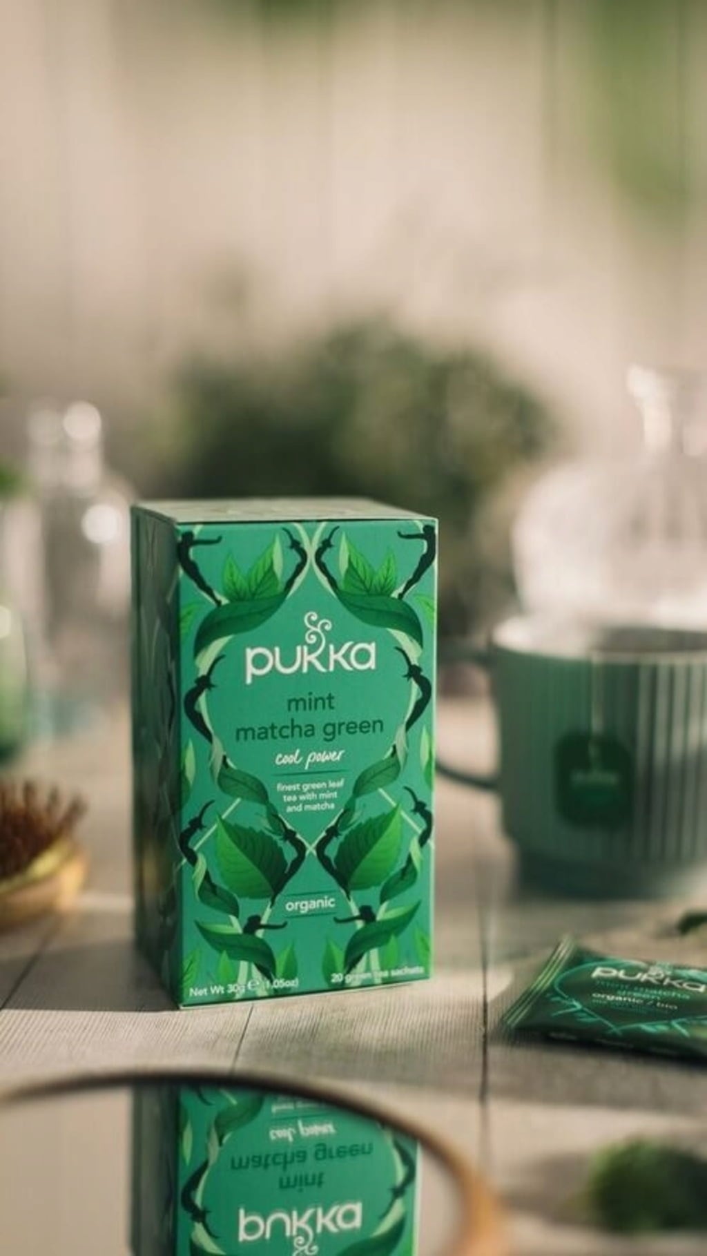 Dieser einzigartige Grüntee wurde von PUKKAs Kräuterexperten sowie Ernährungswissenschaftlern zusammengestellt und kombiniert die neuesten wissenschaftlichen Erkenntnisse mit traditionellem Kräuterwissen. Daraus resultiert eine synergetische Kombination aus Bio-Minze, Pfefferminze, grünem Sencha-Tee und Matcha, die eine ausgewogene Tasse mit kühlenden Aromen und subtilen, reichhaltigen Noten ergibt. Für eine herrliche Tasse voll vitalisierendem Geschmackserlebnis.