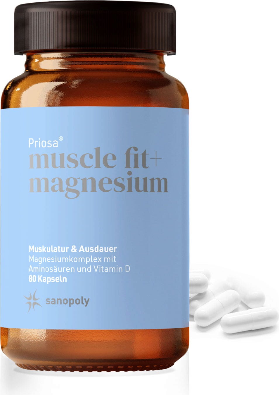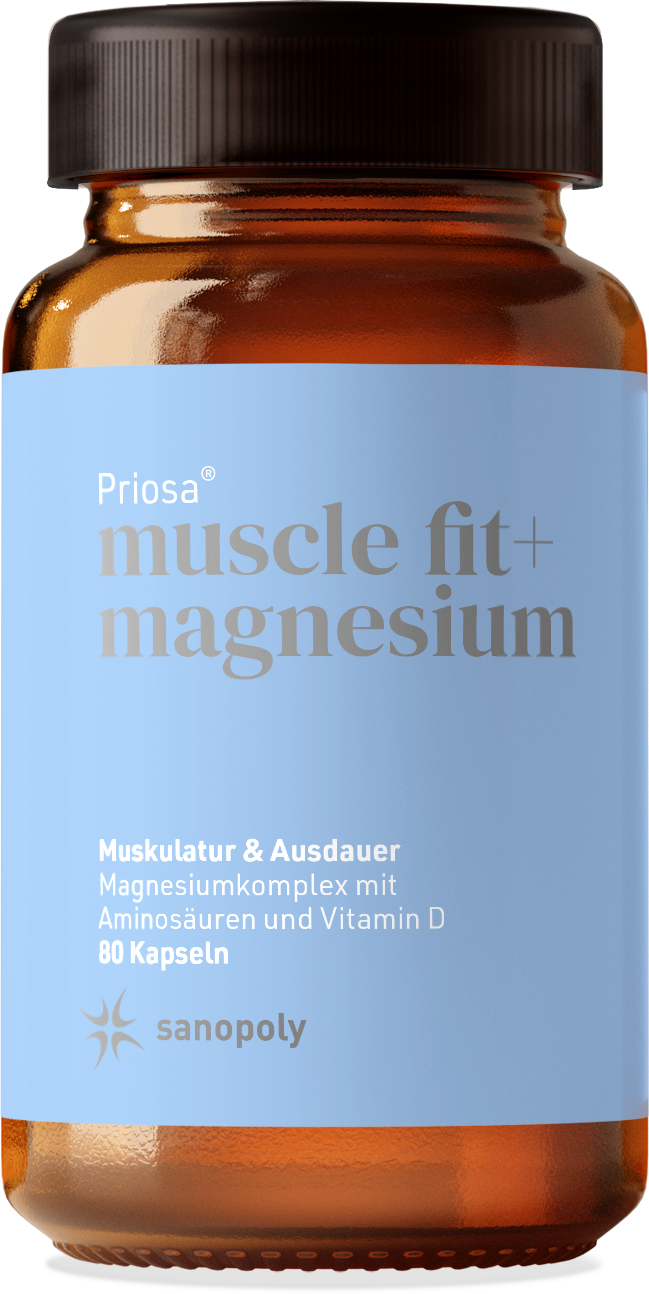Kennen Sie schon die Priosa®MUSCLE FIT + MAGNESIUM Kapseln von Sanopoly? Diese leistungsstarken Kapseln basieren auf einem ausgezeichneten Magnesiumkomplex welcher zudem Aminosäuren und Vitamin D beinhaltet.