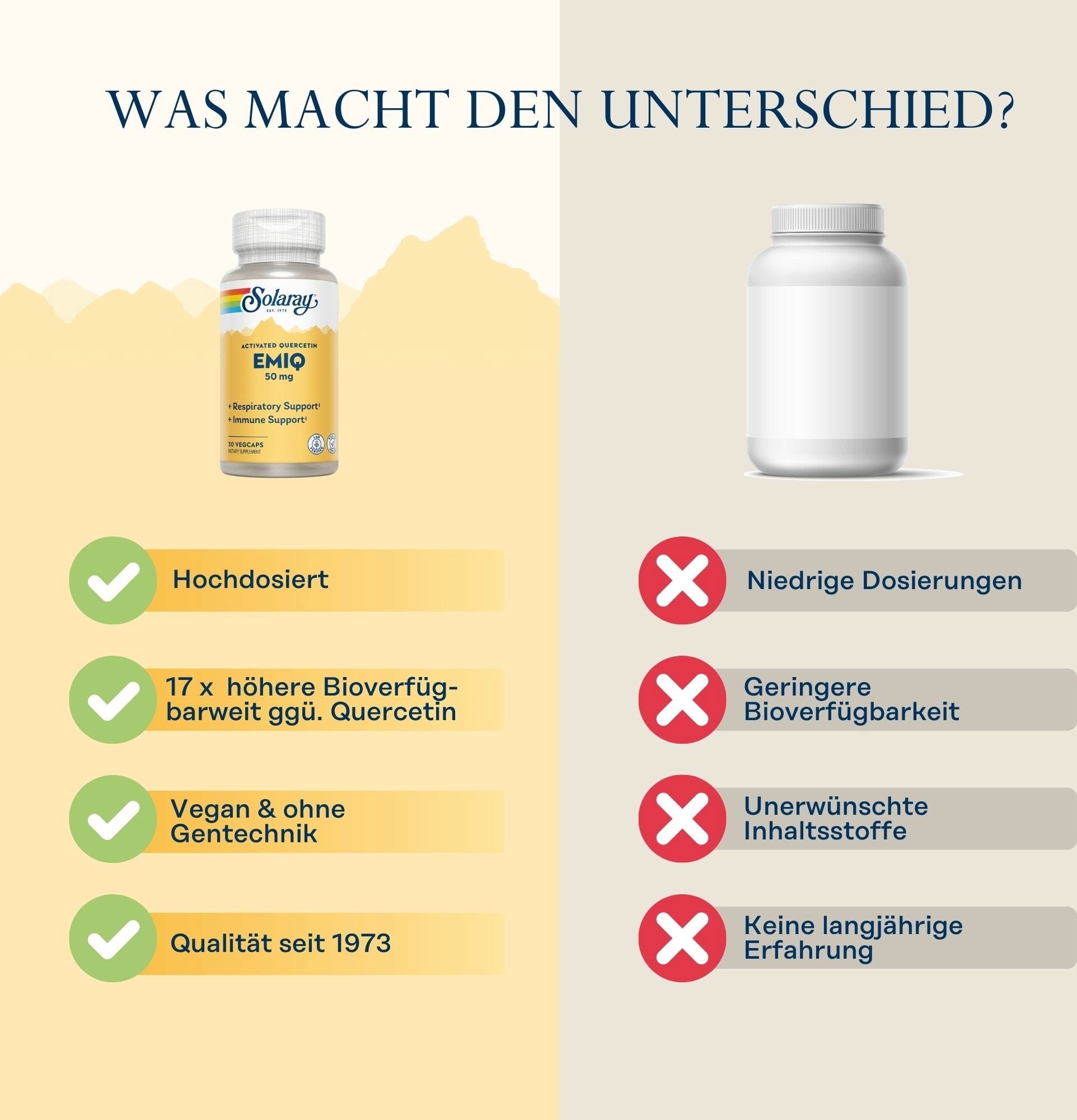 Eine glorreiche Kombination aus Quercetin, Hesperidin und Rutin abgefüllt in pflanzliche Kapselhüllen. Isoquercitin enzymatisch modifiziert.