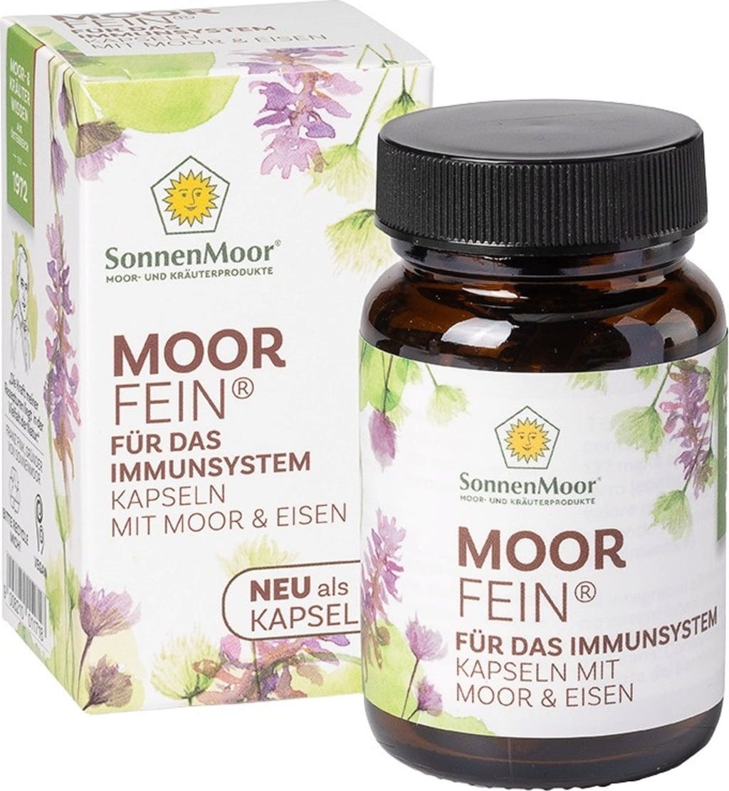 Die MoorFein Kapseln von SonnenMoor enthalten getrocknetes Moorpulver, das aus der wertvollen Schicht des Leopoldskroner Moores in Salzburg gewonnen wird. Dieses Naturprodukt weist von Natur aus Huminsäuren sowie Mineralstoffe und Spurenelemente wie Kalzium und Magnesium auf. Zur Ergänzung der Rezeptur wird Eisengluconat eingesetzt, um eine gezielte Aufnahme dieses wichtigen Spurenelements zu ermöglichen.