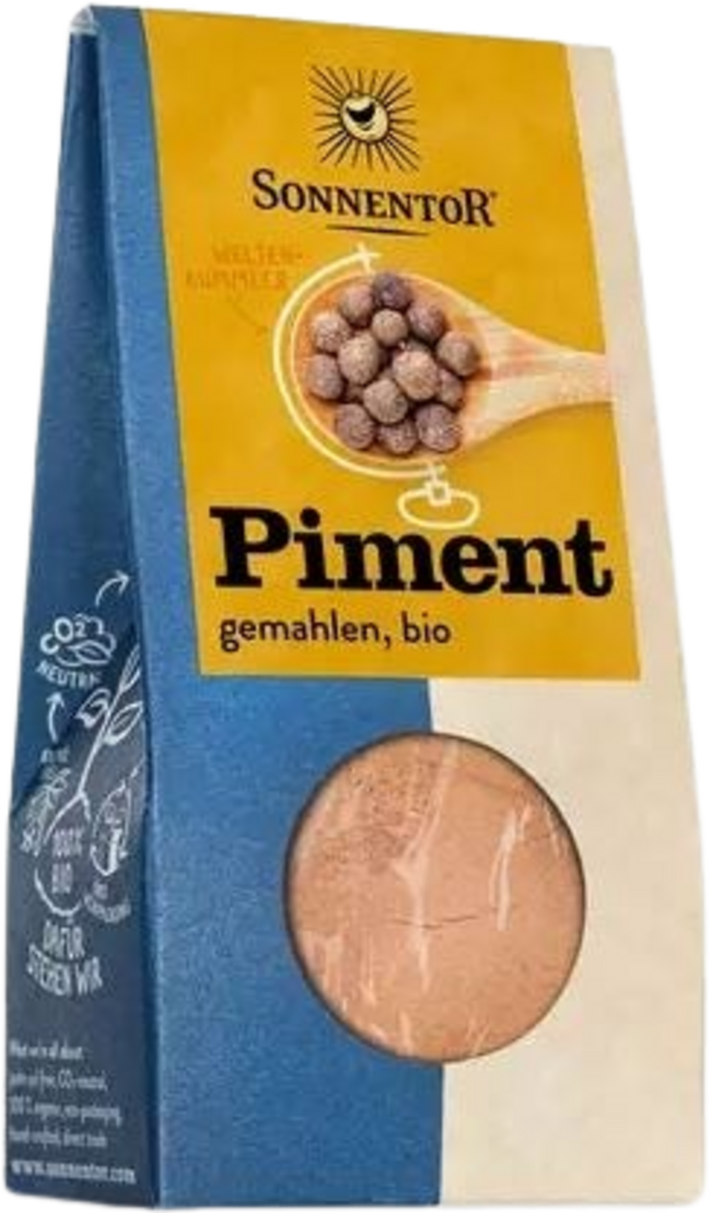 Bereits die Indianer würzten ihre Schokolade mit Piment. Sein Geruch ist sehr stark und aromatisch, ähnlich den Gewürznelken, mit einem Hauch von Zimt und Muskat und mit einer leichten Pfefferschärfe. Feines, aromatisches Gewürz für Fleisch- und Fischgerichte, Wildgerichte, Eintöpfe, aber auch Feinbackwaren oder Pfefferkuchen. Piment findet ebenso Verwendung in verschiedensten Saucen, Marinaden, Gemüse, pikante Salaten und Obstsalaten und in viele Gewürzmischungen, z.B. für Glühwein, Weihnachtsgebäck und Curry.