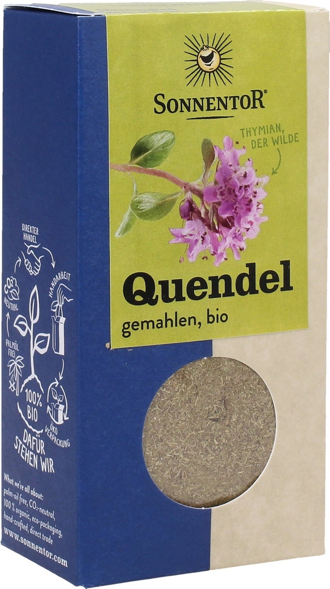 Quendel ist nichts Anderes als wilder Thymian oder Feldthymian und wird in der Küche wie Thymian verwendet. Sein etwas milderer Geschmack passt gut zu leichten Sommergerichten wie Salate, Fisch oder Huhn.