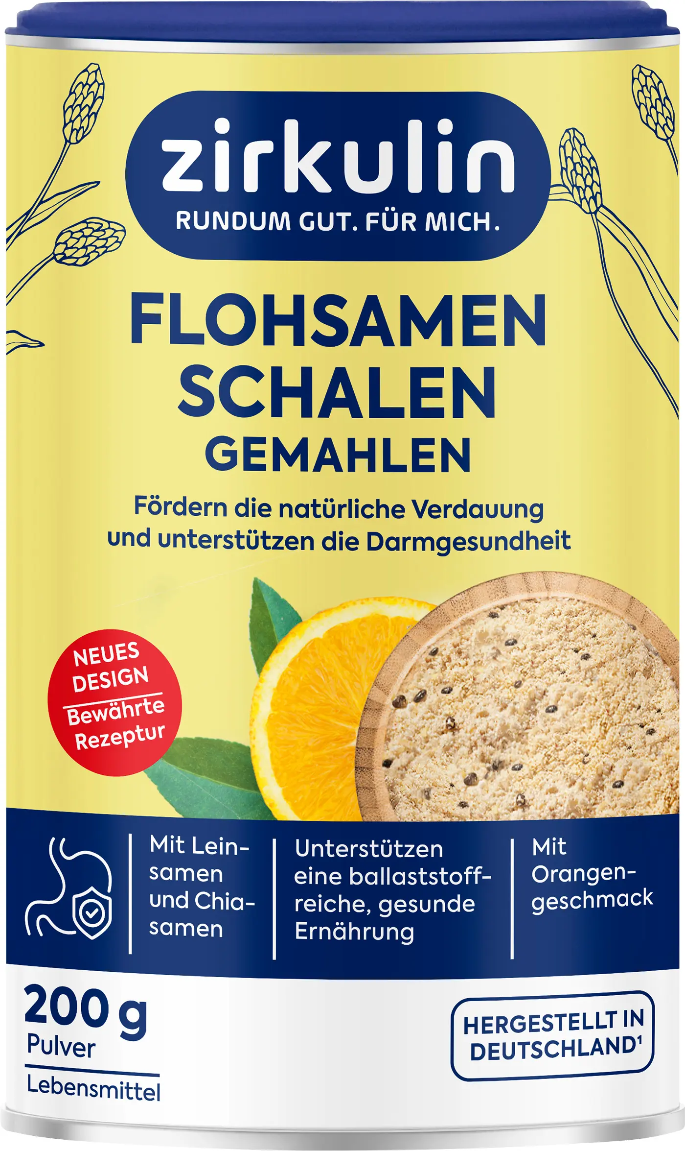 Die gemahlenen Flohsamenschalen von zirkulin sind zusätzlich mit Chiasamen und Leinsamen angereichert und dienen dir als pflanzliches Quellmittel für eine ballaststoffreiche Ernährung. Ein natürlicher Orangengeschmack sorgt für eine fruchtige Extranote des Pulvers. Der Mix ist vegan und frei von Zuckerzusatz und Farbstoffen.